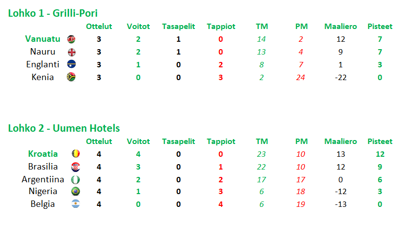 Lopputulokset
